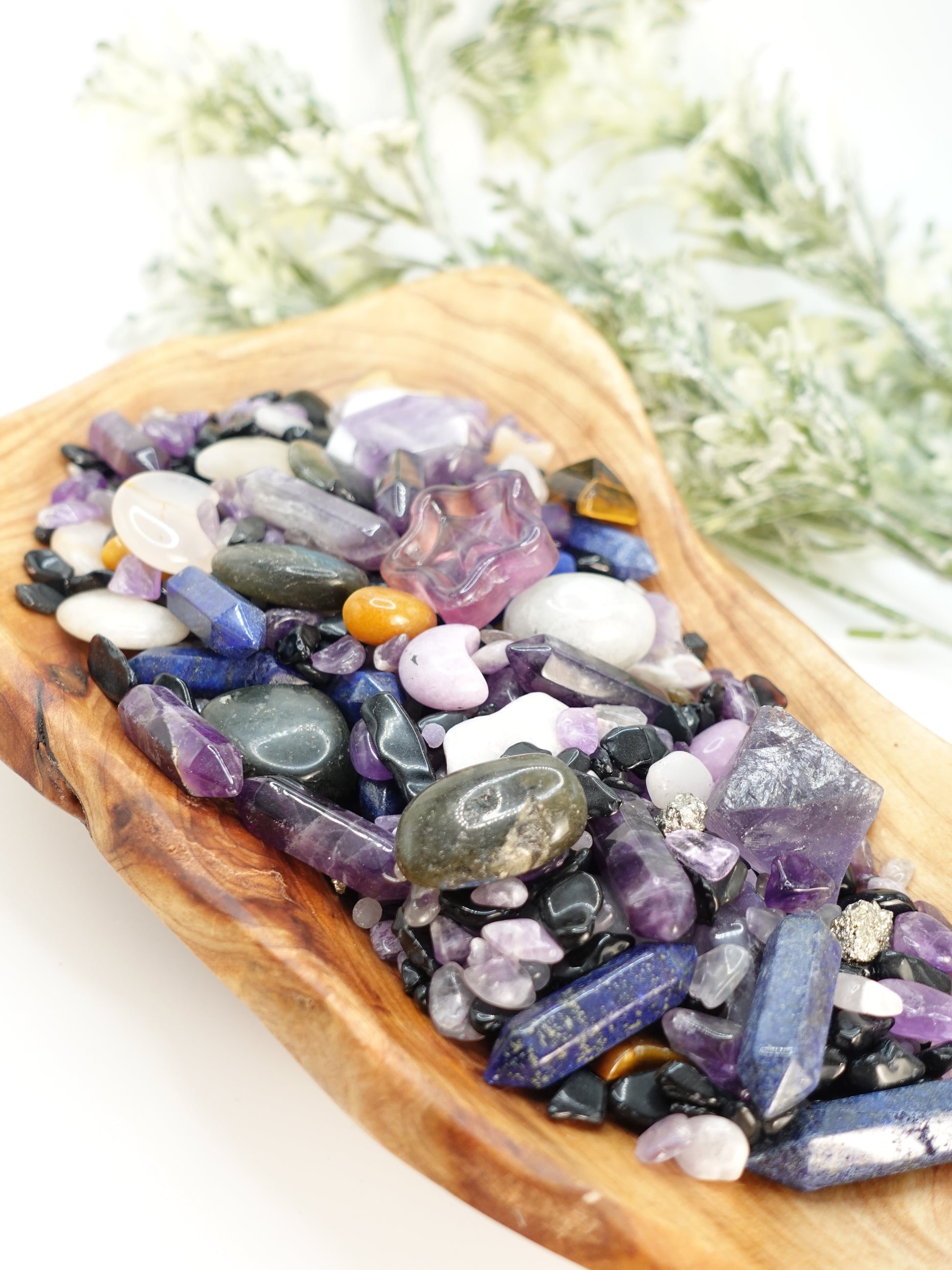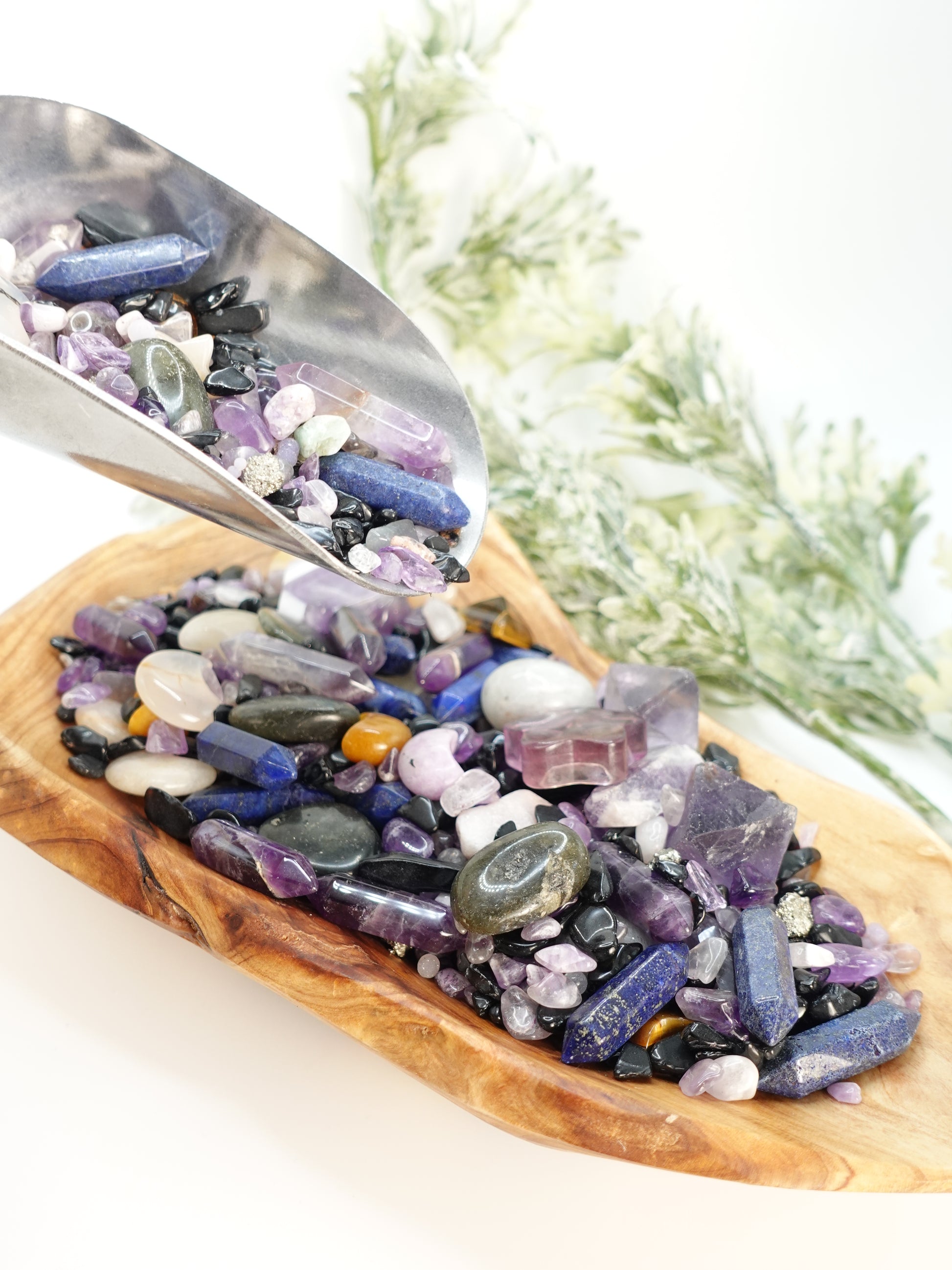 Add a cosmic touch to your crystal collection with the Supernova Scoop! This mystery scoop features chips, tumbles, and mini carvings in a variety of crystal types, all in a stunning galaxy-inspired color palette. Each scoop is a unique surprise waiting to be discovered!