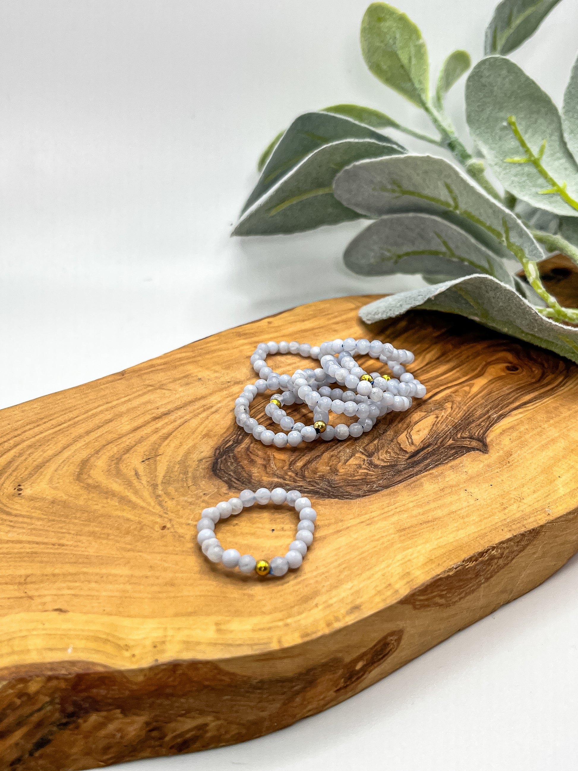 Blue Lace Agate - Round Beaded Stretchy Ring