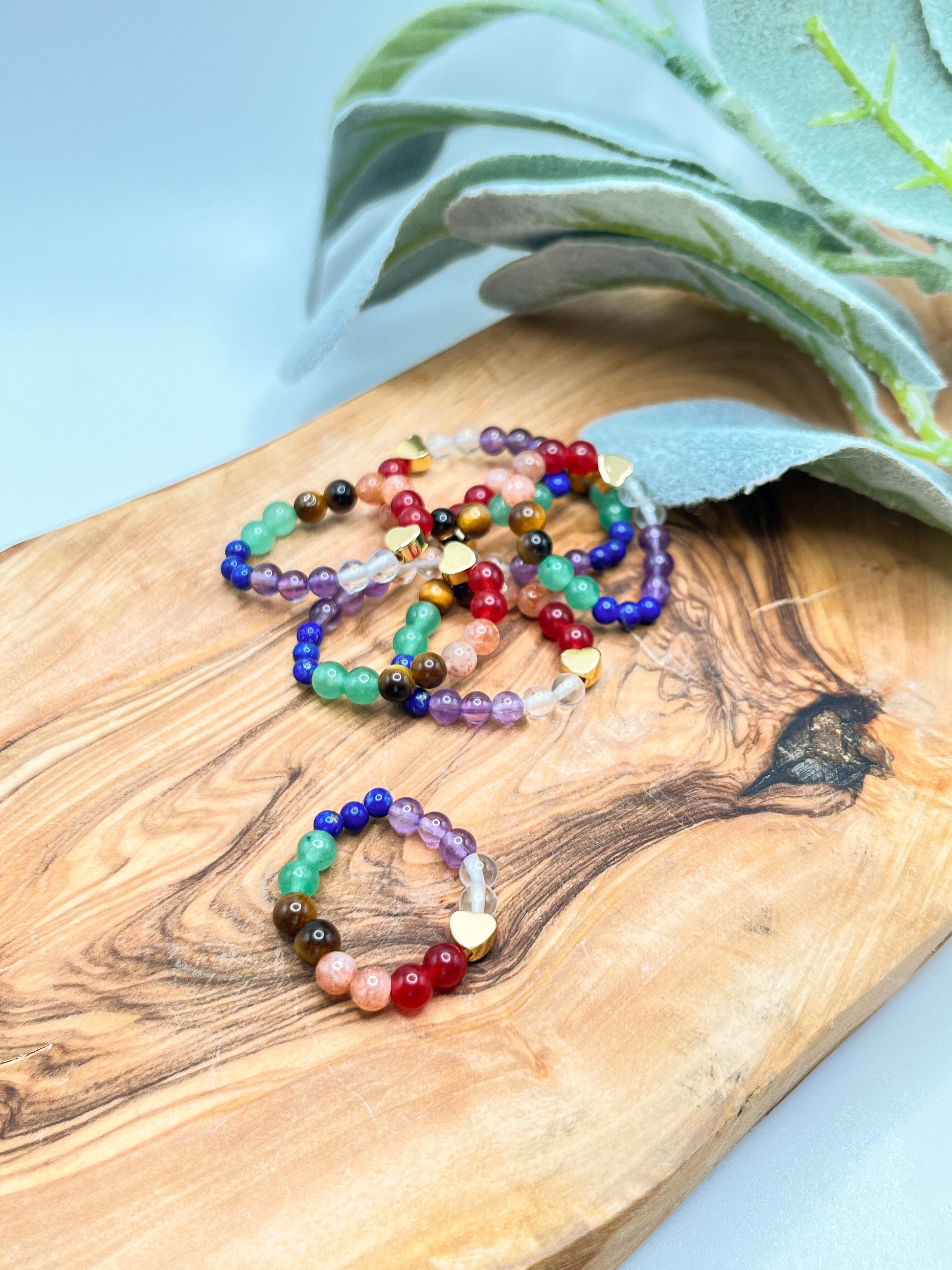 Chakra - Crystal Round Beaded Ring w/ Gold Heart Bead