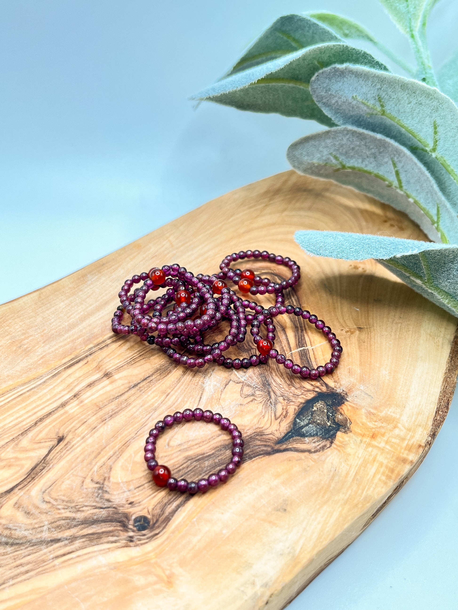 Garnet w/ Carnelian Beaded Stretchy Ring
