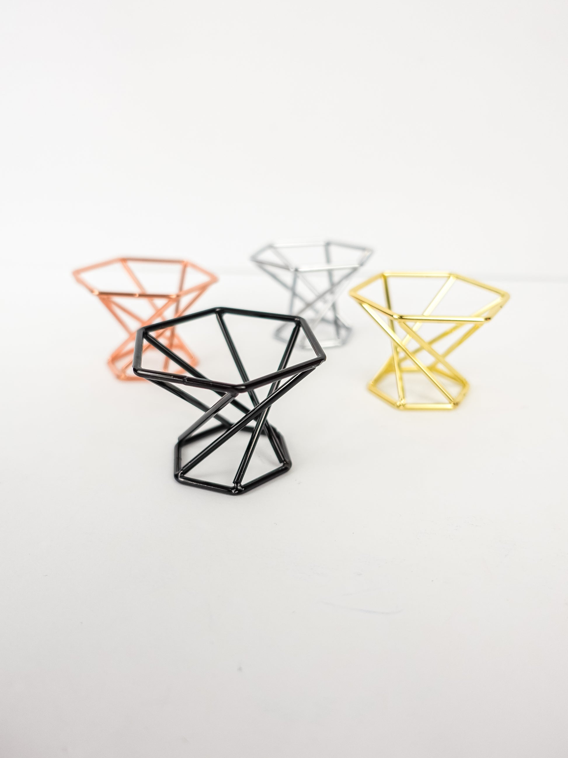 Hexagon Gunmetal, Gold, or Silver Spiral Sphere Stands