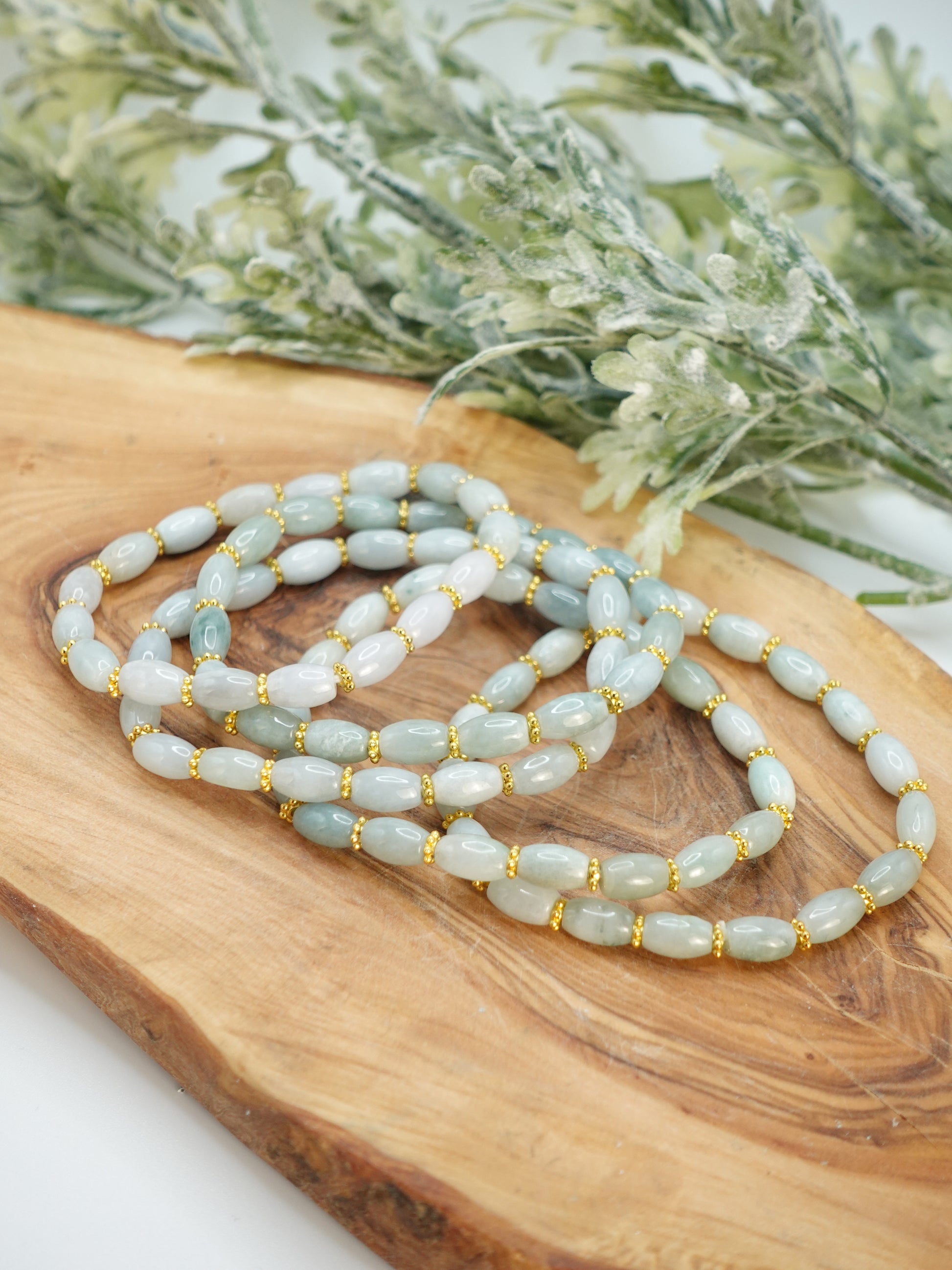Jade bracelet with gold accent beads.