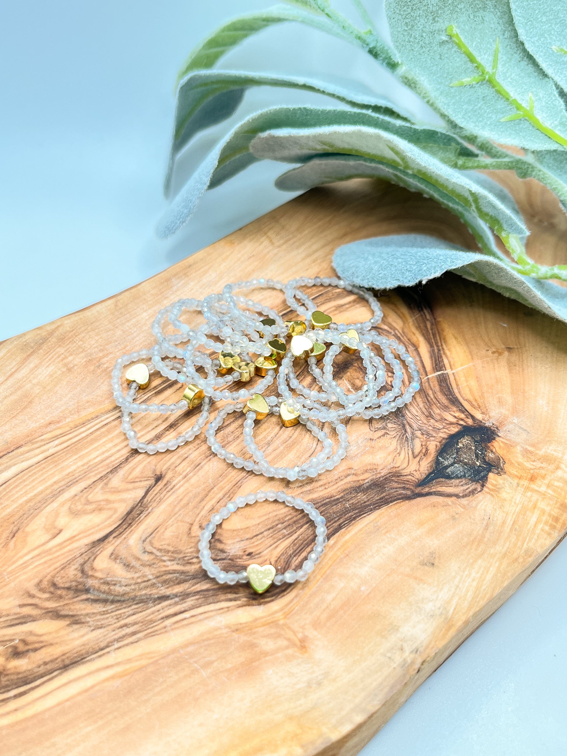 Labradorite - Crystal Round Beaded Ring w/ Gold Heart Bead