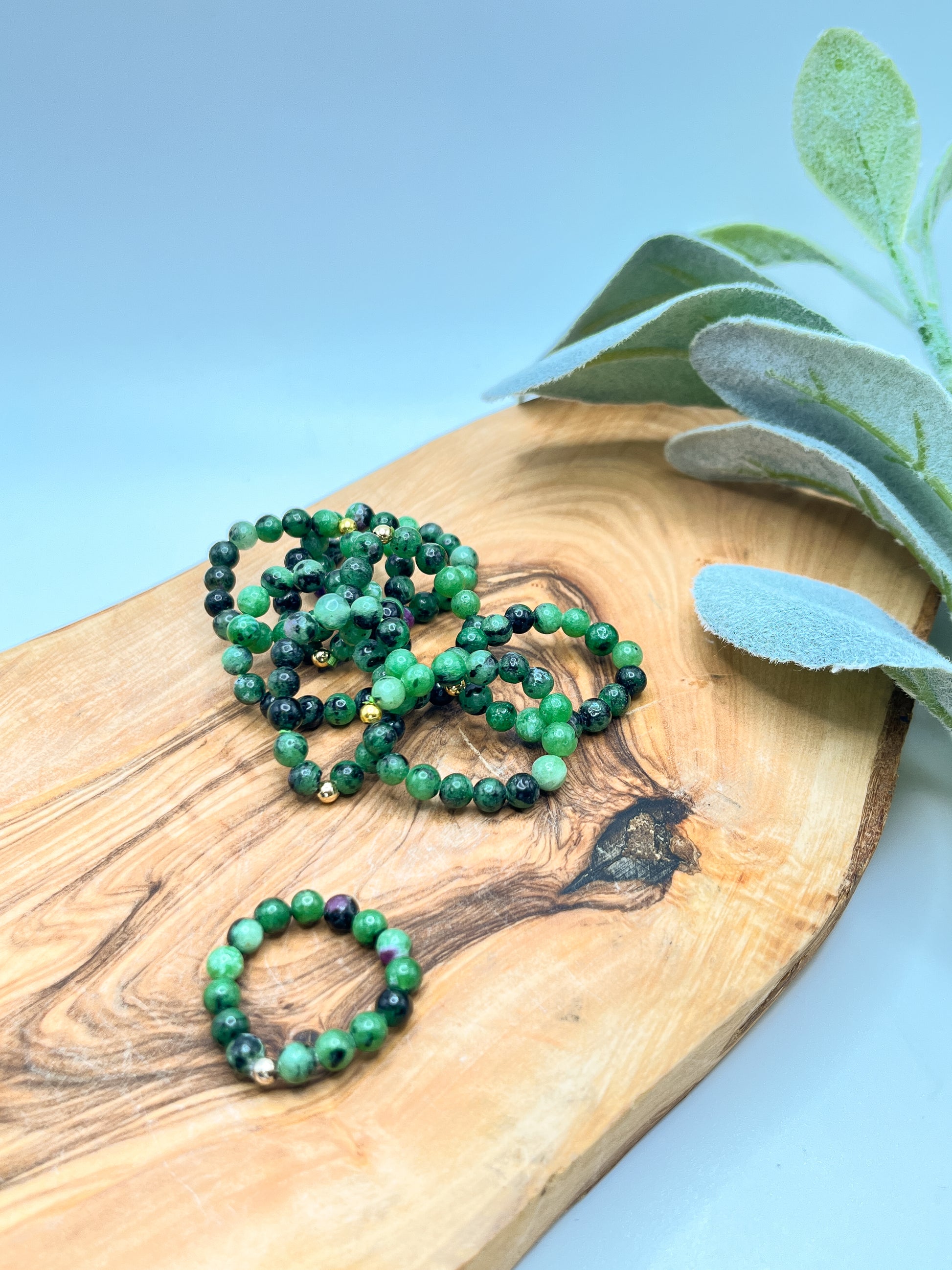 Ruby Zoisite - Round Beaded Stretchy Ring